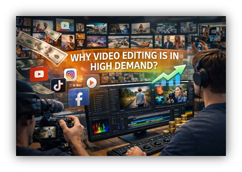 Yes, video editing is one of the fastest-growing creative careers today. With the rise of digital marketing, social media, OTT platforms, and online businesses, skilled video editors are in high demand across industries.